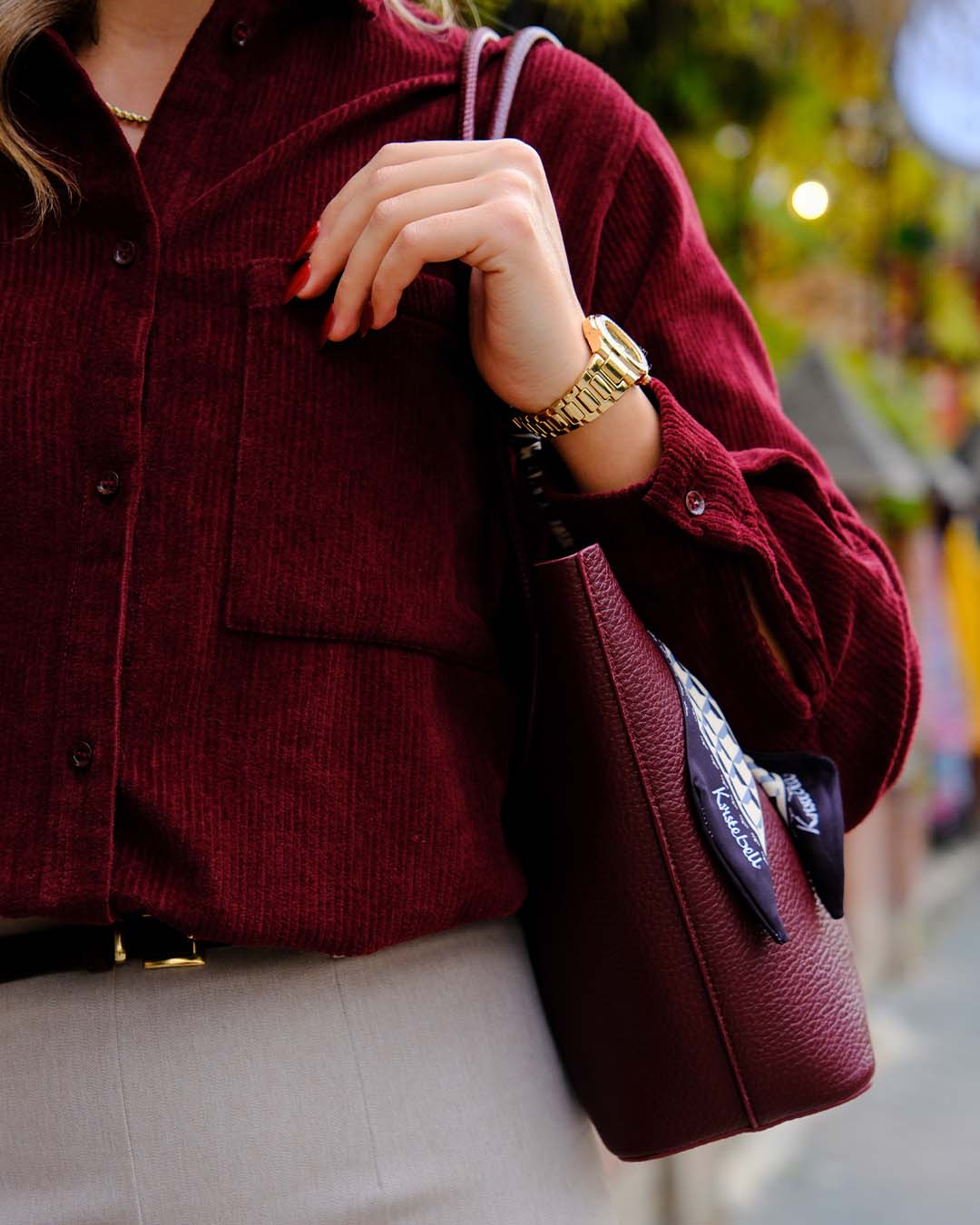 DERİ GÖRÜNÜMLÜ UZUN KOL BLUZ