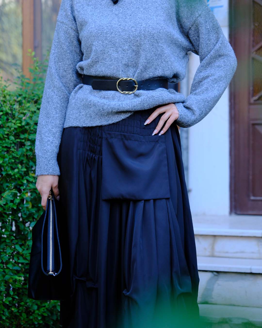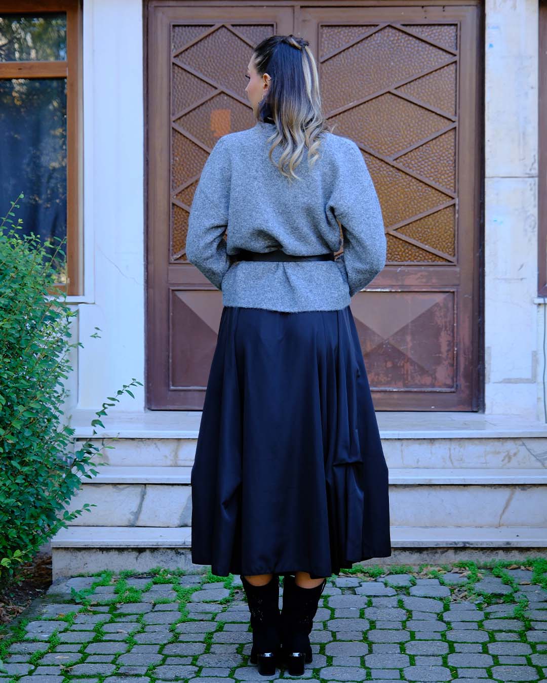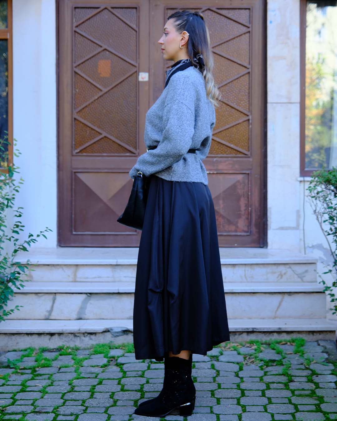 DERİ GÖRÜNÜMLÜ UZUN KOL BLUZ